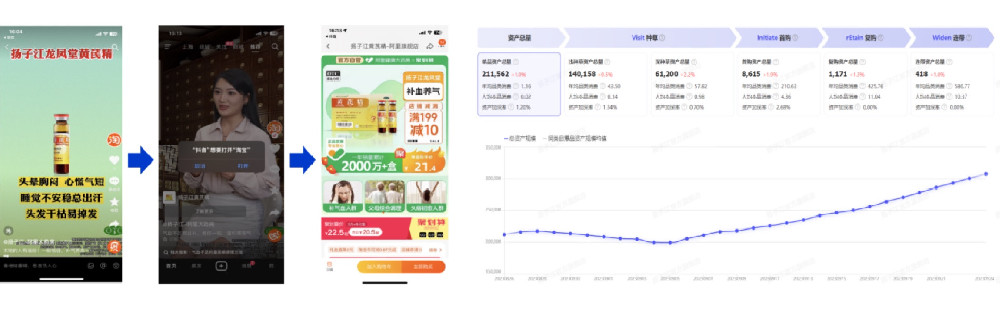 骁柔集团通过CID效果广告在获得直接/间接销售额的同时,帮助品牌沉淀人群资产。助推扬子江旗下滋补类产品黄芪精人群总资产超过90.11%的同行业品牌,并持续增长中。在与品牌共同探索DTC的过程中,已建立10+忠实用户群体。